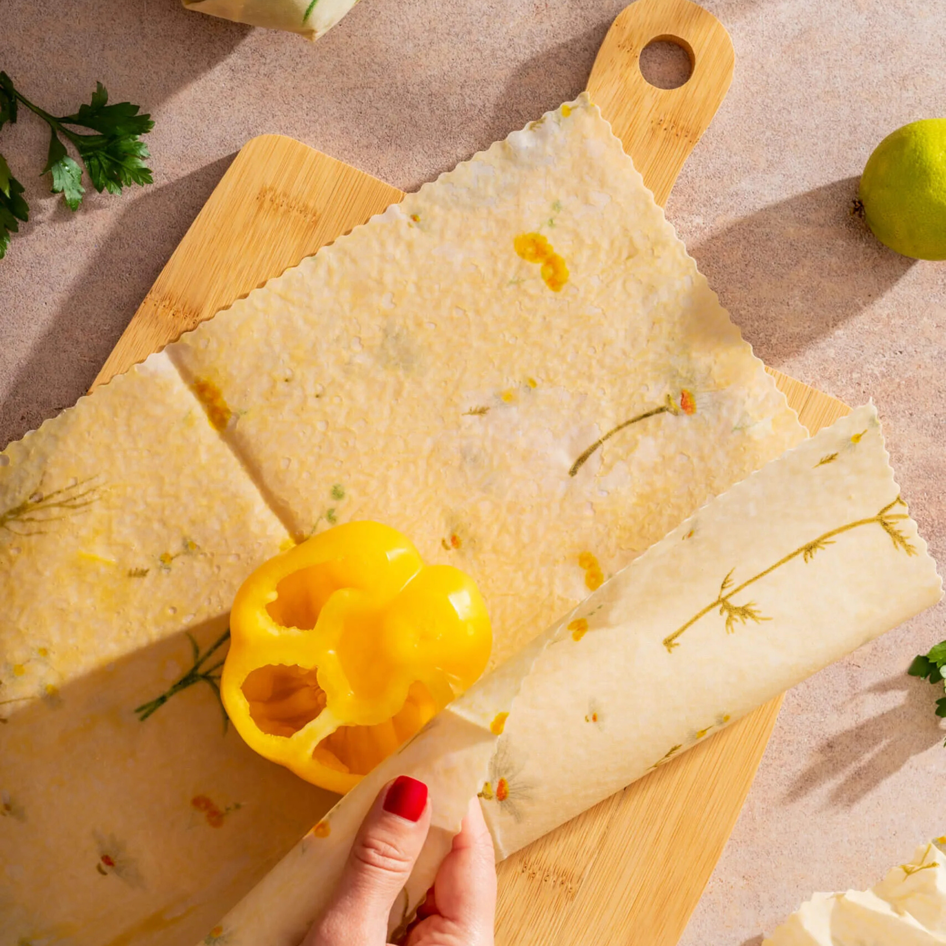 We recommend washing soiled wraps by hand with cold water and a soft sponge. If needed, use a mild dish soap and let them air dry naturally in a dish rack. With regular use and proper care, beeswax wraps can be used for an entire year. Avoid heat and hot water, as beeswax has a low melting point.