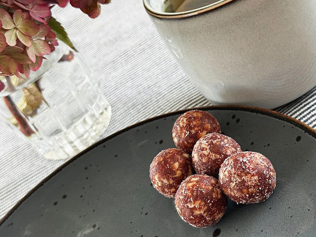 Energy balls: Lingonberries and Peruvian Maca in Almonds – a snack variety born from the search for an exceptionally valuable superfood combination.