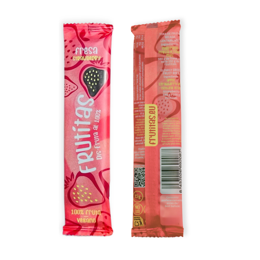 Discover Frutitas of Strawberries , a healthy, 100% natural, and vegan snack. Frutitas of Strawberries are a nutritious snack with an intense flavor, ideal for those looking for a healthy and unique option. This product, made with carefully selected strawberries and apple, offers a sweet and slightly sour flavor that is appreciated by both children and adults.
